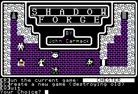 Dada la situación, sus padres se darían cuenta de la pasión y las ganas de continuar aprendiendo, con lo cual decidirán impulsar el talento del joven Carmack, por lo que verían la posibilidad de comprar una Apple II, de está manera comenzaría su historia dentro de la creación de videojuegos y en apenas seis meses vería realizada su primera obra, ShadowForge.