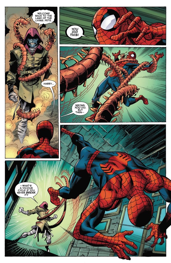 Doc Pulpo y el Buitre seguirán provocando destrucción y horror en Nueva York en Sinister War #2, que continuará el próximo 4 de agosto. Y las reseñas continuarán aquí en Back to Play. Pero la agenda secreta de Kindred contra Peter podrá leerse en Amazing Spider-Man #71, a la venta el próximo 28 de julio.