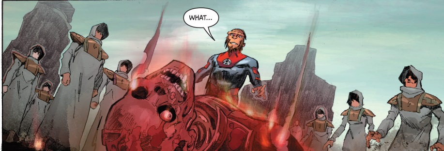 Esto se puede percibir tanto como un defecto como una virtud: al no tener nada para hacer avanzar tu trama, que los personajes salten de un lado a otro sin algún motivo aparente te hace sentir que todo va demasiado rápido. Y de hecho, todo avanza demasiado rápido. Es una historia de solo 6 números y eso le juega bastante en contra, pero ya hablaré de eso más tarde.