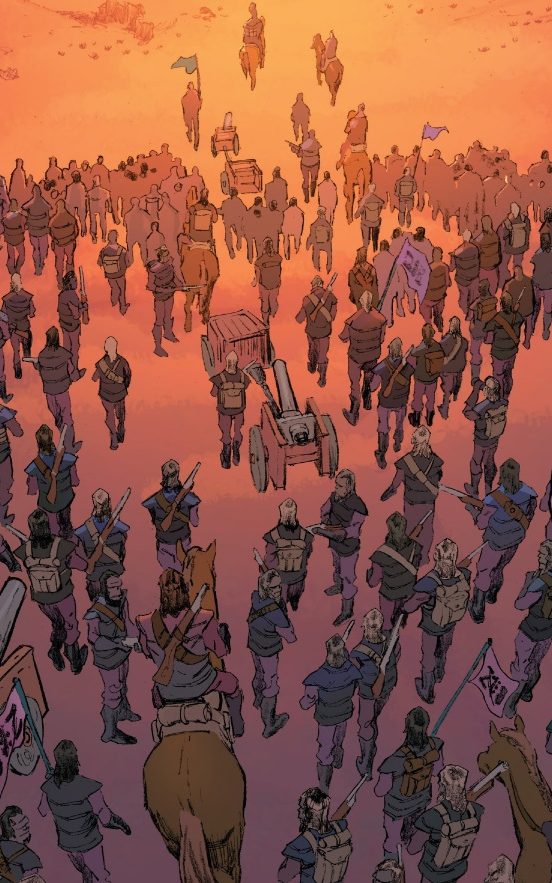 Es increíble lo que se puede lograr con una visión bien fija y un compromiso con la historia que estás contando, todos corren el riesgo de morir todo el tiempo. Y hablando de morir, y la acción, Dios mío, esta historia tiene viñetas épicas en cada numero, en más de una ocasión me descubrí mirando la misma imagen por más de 3 minutos, solamente apreciando la atención al detalle, el manejo de planos, de espacio, los colores y el dinamismo en sus imágenes. Es simplemente encantador.