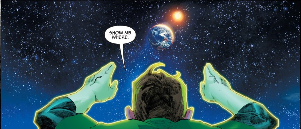 Esto ya nos deja intuir varias cosas: la trama será sencilla, sin nada de simbolismo o significados ocultos o dobles lecturas; su mundo mismo reconoce que es mejor alejarse de este problema y dejar que las cosas sigan su curso natural, sin embargo, Hal Jordan está involucrado en esto, y cuando Hal está involucrado, las cosas no avanzan naturalmente.