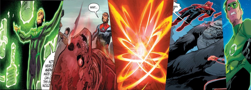 El comic sufre mucho de esto: los personajes se mueven de un lado a otro solo por que sí; cuando se nos revela quien es el antagonista y que es lo que está haciendo, el segundo grupo de Linternas toma la decisión de ir a ayudarlo sin ningún tipo de plan más allá de llevar a Gorila Grodd con ellos, ¿Por qué llevarlo? Bueno, es muy simple, realmente… Lo llevan porque es un gorila, nada más. No es necesario decir que esto sale terriblemente mal; de hecho, la trama se alarga de manera innecesaria.