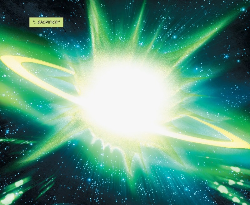 Sin embargo, el hecho de que todo avance tan rápido ayuda a que no veas los huecos en la trama: te permite enfocarte en la acción en todo momento, ¡y vaya si la acción es buena! El comic es una tercera parte explicación y cierre, y el resto es una batalla campal con distintos giros, escenas impactantes, ritmo desenfrenado y muchas muertes importantes a tal grado qué, si esta historia afectara al universo principal, sería muy preocupante y desestabilizaría al resto de los Lantern Corps.