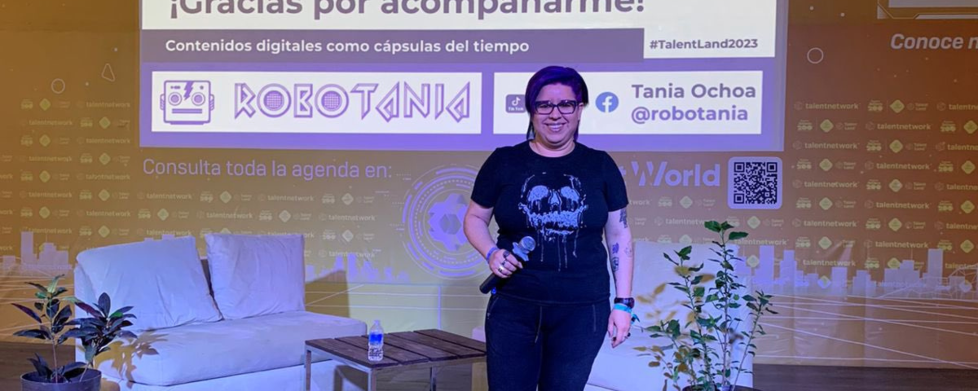 Robotania (Tania Ochoa) nos llevó de la mano a una plática de como el internet guarda todo y con ello se convierte en una Cápsula del tiempo.