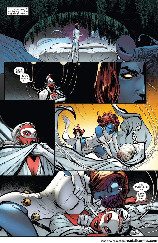 Un altercado entre Hope y Exodus por sus acciones en aquel futuro detiene la discusión entre Storm y Destiny, sin embargo, algo deja claro Ororo, si Irene le esta mintiendo, lo descubrirá.