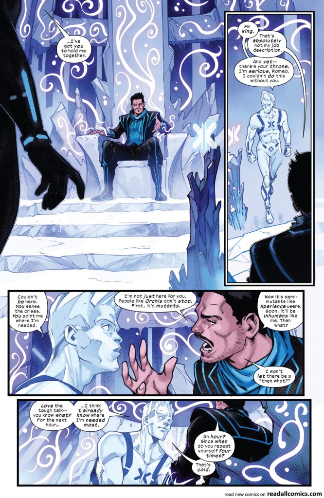 Con el Inhumano Romeo como parte del reparto, quien vio morir a Iceman en primera plana, y siendo esta motivación para seguir vivo, esta revista tiene acción y una aventura fabulosa, pero como mencionamos párrafos atrás, por la misma naturaleza de miniserie que tiene, hasta el momento solo hemos visto un inicio agradable. Veamos que pasa en próximas entradas.