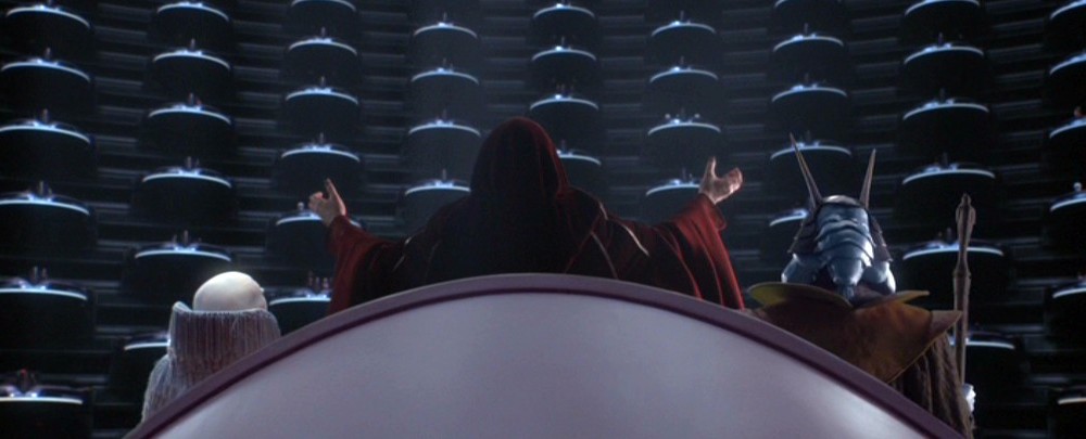 El canciller Palpatine en Star Wars juega un rol similar al de Adolfo. Ambos personajes se presentan como salvadores de la democracia, pero ocultan su verdadera naturaleza. Palpatine exige plenos poderes para actuar contra los enemigos de la República Galáctica, al igual que Hitler lo hizo en la Alemania nazi. La inestabilidad y la violencia desatada durante el Periodo de Entreguerras en la República Galáctica son paralelas a la situación en Alemania, donde el descrédito del sistema permitió a los nazis alzarse como salvadores.