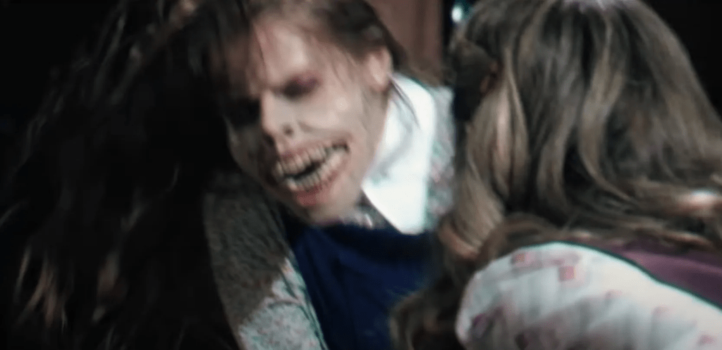 Como mencioné, la secuencia de la posesión demoníaca es el núcleo que da sentido a toda la historia, y es realmente espectacular gracias al increíble trabajo de Ingrid Torelli (Force of Nature: The Dry 2). En De noche con el diablo, la presencia del demonio se presenta casi como una segunda personalidad dormida en el interior de la niña, y Torelli abraza ambas facetas de su personaje: Lilly es una chica dulce, amable y servicial que intenta superar los traumas de su pasado; por otro lado, el demonio dentro de ella es una entidad poderosa y destructiva con intenciones ocultas. La voz y la corporalidad de Torelli son esenciales para transmitir esta dualidad, ya que con un simple cambio de postura es capaz de helar la sangre de los espectadores.